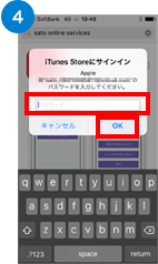 検索より「sato online services」と入力し、検索された画面の「入手」をタップする